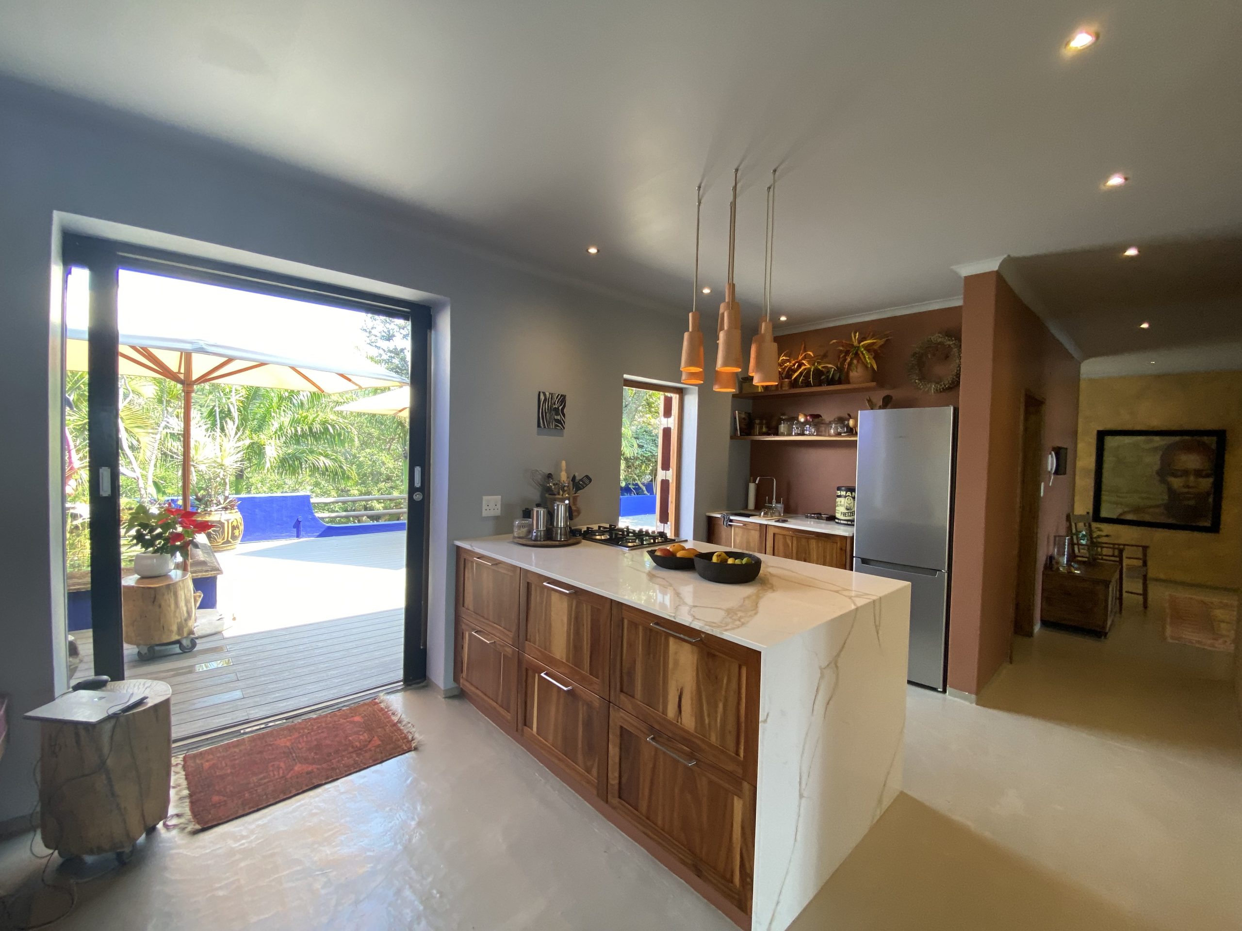 Amasundu Beach House, a unique and tranquil getaway, with direct access to pristine beach. Situated in a prime position, with spectacular views of the Indian Ocean. A 3 bedroomed spacious house with rim flow pool, decks with ocean and inland views, a solar system to provide uninterrupted power supply, and tanks to provide back up water storage. Well secured property. 6 golf courses, within short driving distance. 2 hour drive from King Shaka international airport, and Margate airport nearby.