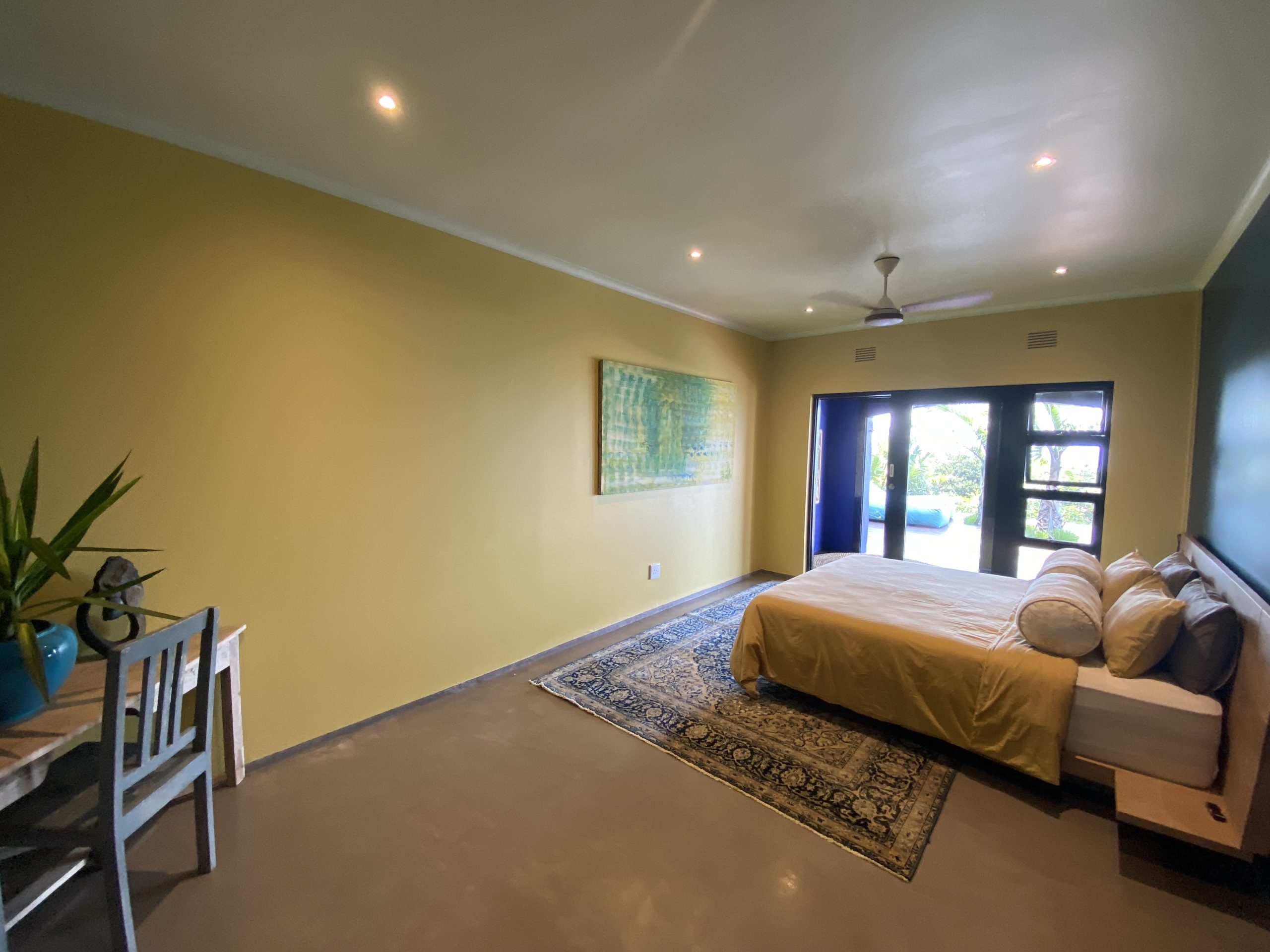 Air Conditioner, Built-in Cupboards, Concrete Screed Floors, Fan, King Bed, Patio