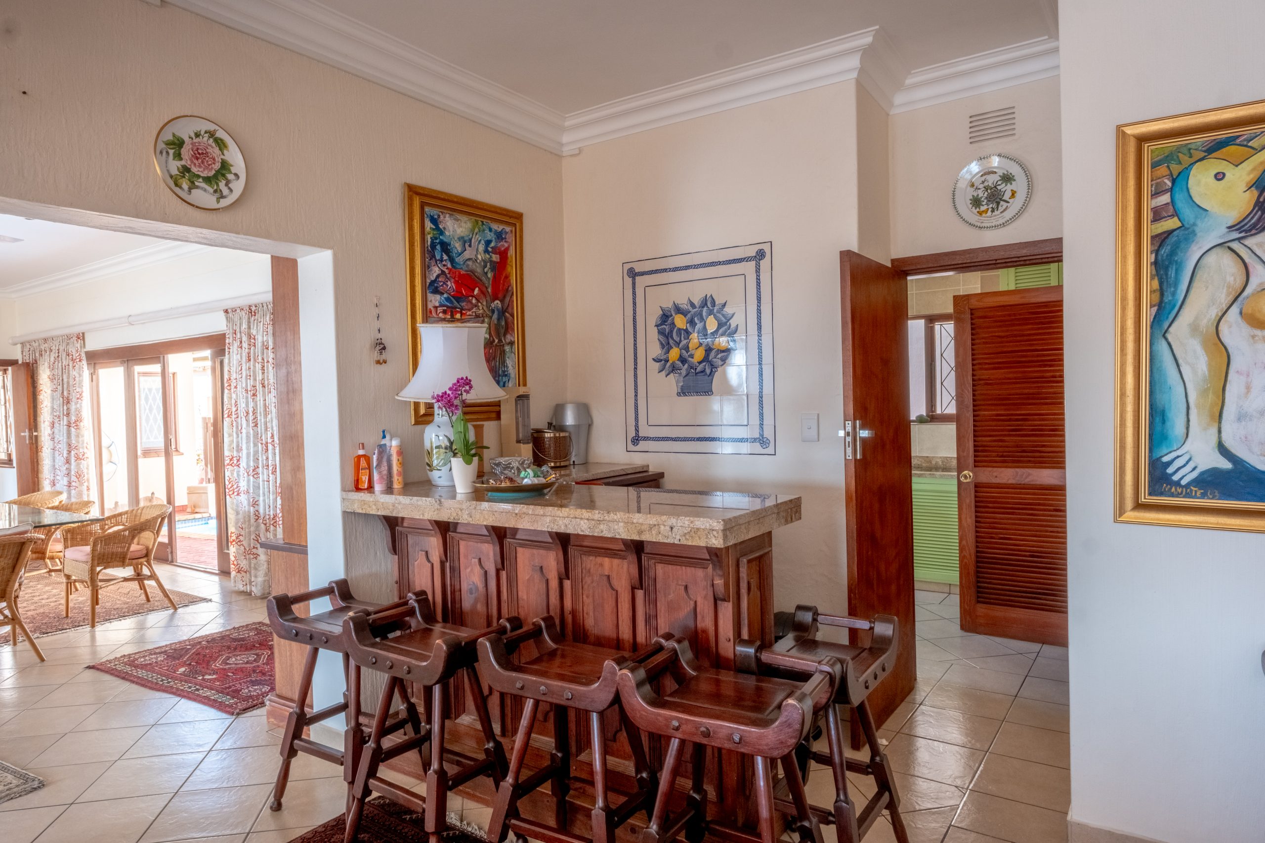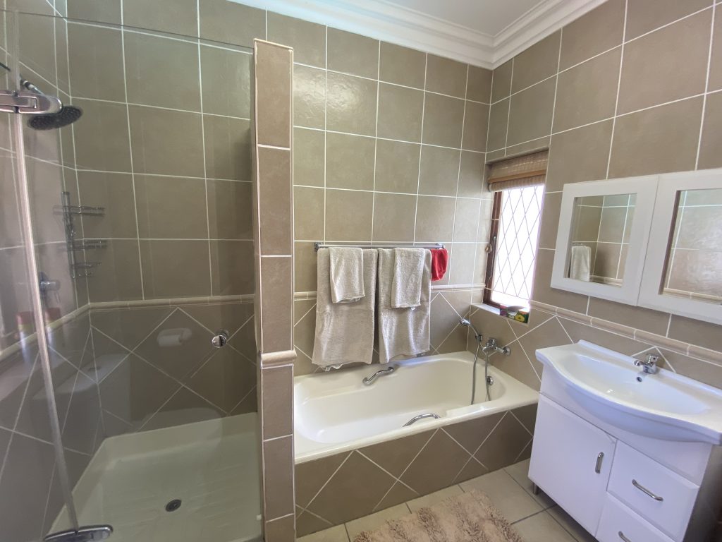 This spacious home offers five bedrooms and four bathrooms, making it ideal for large families or those who love to entertain. A protected braai area and swimming pool allows for year-round enjoyment, regardless of the weather.